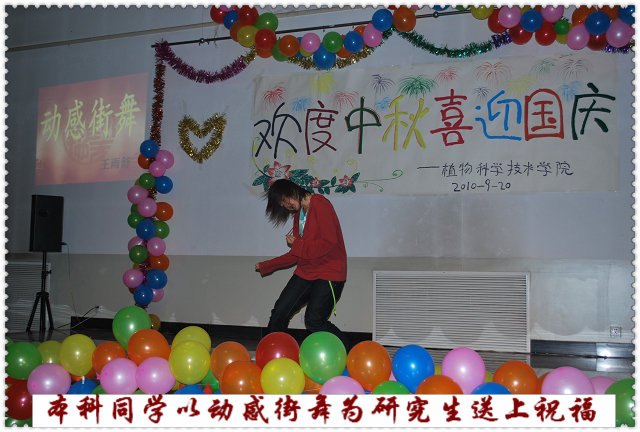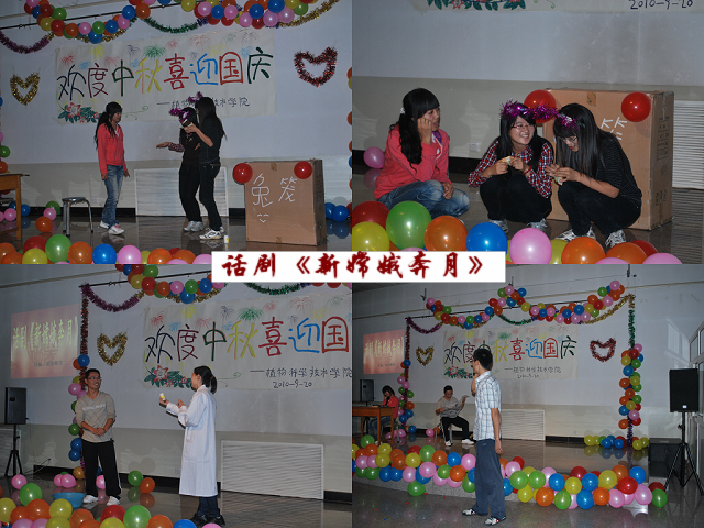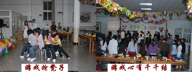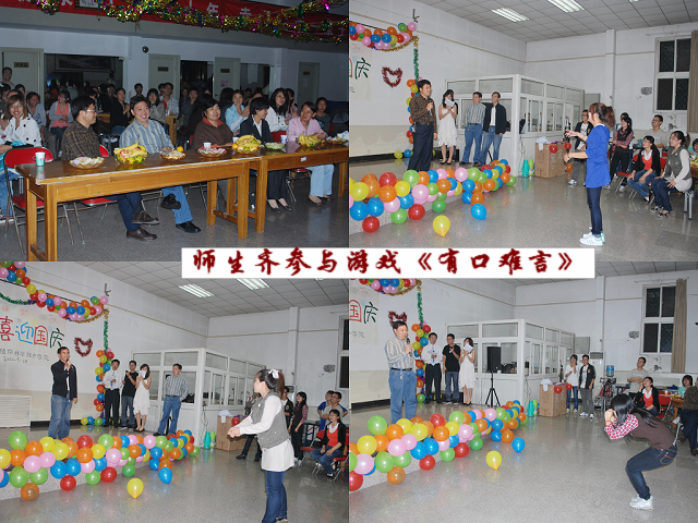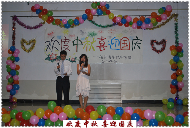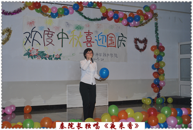 9月20日19时,太阳成集团tyc151cc在校工会活动室为2010级研究生举行 “欢度中秋·喜迎国庆”联欢晚会。科技与研究处处长张志勇、太阳成集团tyc151cc经理秦岭、副经理王绍辉、张喜春、赵金芳,研究生导师杨起简、沈元月、谷建田,教学秘书吴春霞、研究生辅导员贾慧敏及10级研究生共聚一堂,观看文艺演出,欢度中华民族传统节日中秋佳节,喜迎建国61周年。