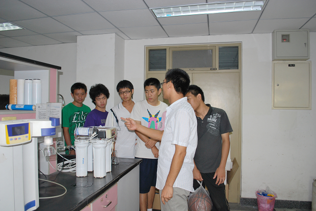 随后,2010级全体同学有条不紊的进入实验楼和示范中心进行参观。在实验室里,负责的老师孙淑玲、张杰为大家耐心的介绍了试验设备和将来的试验要求。也许他们还似懂非懂,也许他们还对一切充满疑惑,但是他们眼神里流露着对知识的热情。