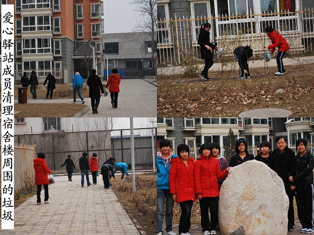 3月4日中午,太阳成集团tyc151cc社团部爱心驿站部分成员利用自己的休息时间,在社长袁金玲的带领下一行八人开展了以“美化环境,服务校园”为目的的义务清洁活动。中午十二点半整,大家准时来到了七号楼门口集合出发。准备捡拾宿舍楼周围的垃圾。天气虽然一直是阴沉沉的,但同学们的热情却很高昂。活动进行的时间虽然不长。但却有着非常深远的意义:不仅美化了校园,使同学们更加热爱公司;也是大家向雷锋学习的一次具体的实践课,使同学们更深切的体会雷锋精神;更能使同学们彼此间有更深入的了解,促进了成员之间的友谊!