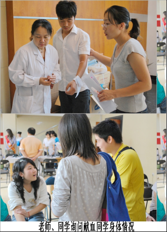 中午,副经理赵金芳亲自将院里为同学们准备的牛奶、红枣送到宿舍,并到男生、女生宿舍慰问献血的同学,关切的询问他们的身体情况,同学们都表示没有不舒服的症状。