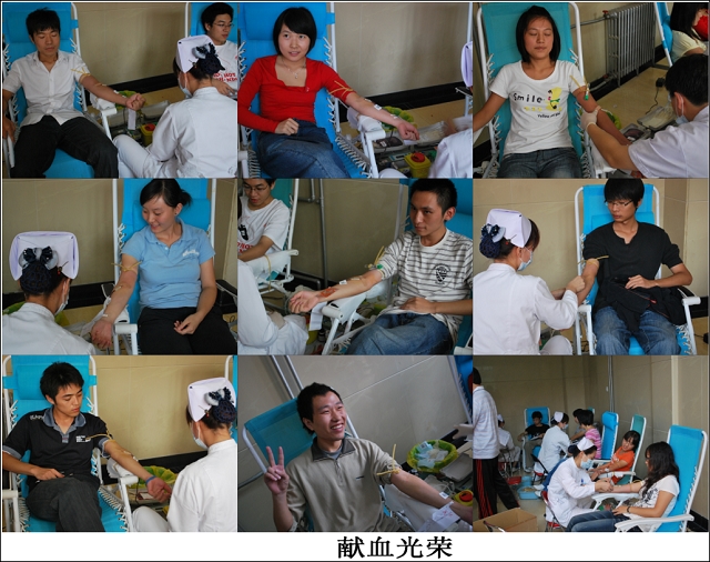 在体检、抽血各个环节同学们严格按照公司的要求,井然有序,面带微笑积极配合医生、老师的工作。在这次义务献血活动中,出现许多感人事迹。一是员工党员带头、入党积极分子和员工骨干带头、广老员工踊跃参加报名;二是部分员工在已献血2次、甚至3次的情况下,仍然积极要求报名参加这次义务献血活动;三是部分班级三分之二的员工、甚至全体班级同学都要求报名参加。