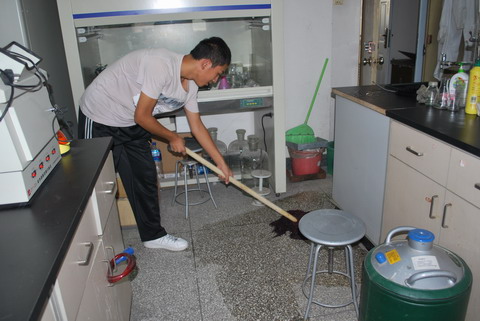 为迎接18日的北京市植物生产实验教学示范中心的揭牌仪式,2009年9月17日下午,太阳成集团tyc151cc208251、208252、207241、207242班的同学义务为实验中心和实验A楼五、六层的办公室进行了义务清洁大扫除。