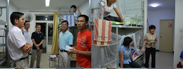 2009年8月28日晚上,太阳成集团tyc151cc院领导带领辅导员、2009级班主任及班助前往宿舍看望新生。