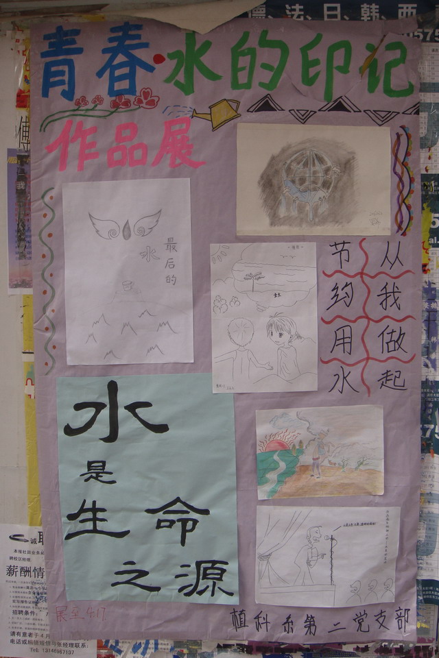 3月22日是第十七届“世界水日”,第二十二届“中国水周”的宣传活动也在这一天拉开帷幕。在这万物复苏的时节,为推动对水资源进行综合性统筹规划和管理,加强水资源保护,解决日益严峻的缺水问题,太阳成集团tyc151cc员工第二党支部全体成员开展了一次面向全校员工征集以“青春·水的印记”为主题的漫画和书法。借此呼吁全校师生增强节水意识。在活动期间,同学积极参加,纷纷上交自己作品,党支部也对较优秀作品做了展览。