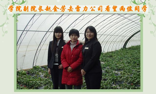 半年的专业实习,其间的经历在她们职业生涯的开端可谓丰富,大学本科毕业生下基层在田间地头服务农民,仅够维持生计的实习酬劳,严格的公司的制度,完全的员工角色转变等等一系列的问题,一切的不可思议,需要她们转变思想,面对现实,走入社会。她们讲道曾经的抱怨、诉苦,得到了高遐虹老师的一再支持,以及院里其她老师和家人的鼓励。仅仅半年中她们学到了很多很多,不仅仅是对雷力的了解更深一步还学到了很多大学书本中没有的专业知识。慢慢的她们得到了公司的认可,公司负责人在评价她们时用了四个字“勤奋、主动”,准备与她们签订协议。