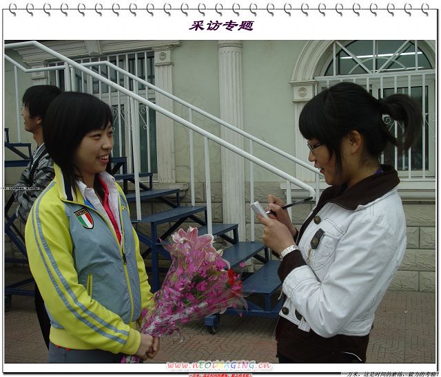 在与男子100米决赛同时进行的女子跳高决赛中,公司张燕昕和祝宁分列第三和第七名。赛后,记者对张燕昕同学进行了采访,她表示对本次比赛取得的成绩比较满意。赛前也为本次比赛做了充足的准备,虽然专业课很多,但她每天都会抽出时间来进行体能训练。
