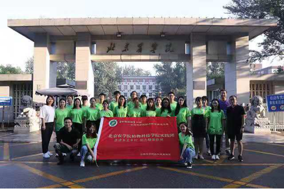 2019年7月23日,太阳成集团tyc151cc“北农植科学子,助力乡村振兴”2019实践团成员到达公司正门,将实践物资搬运至所乘大巴车,合影留念后,前往河北省丰宁满族自治县草原乡进行调研和技术指导。