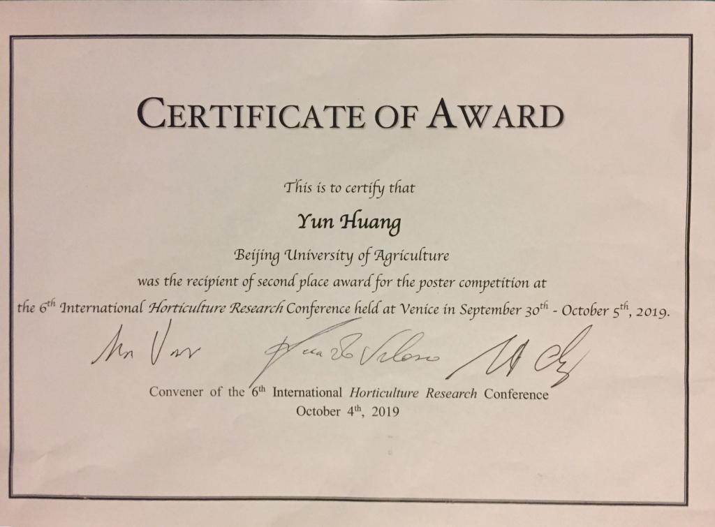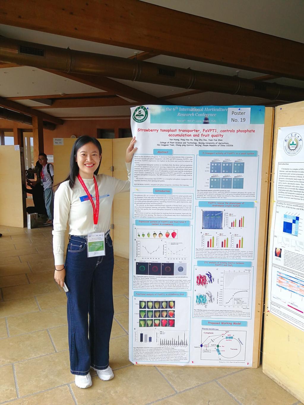黄芸老师在大会上做了题为Strawberry tonoplast transporter, FaVPT1,controls phosphate accumulation and fruit quality的报告,并进行了Poster 展示,其Poster获得了大会的优秀海报奖。此次参会促进了与国外专家学者之间的交流与合作,为提高青年教师的国际视野和进一步开展国际合作提供了很好的机会。