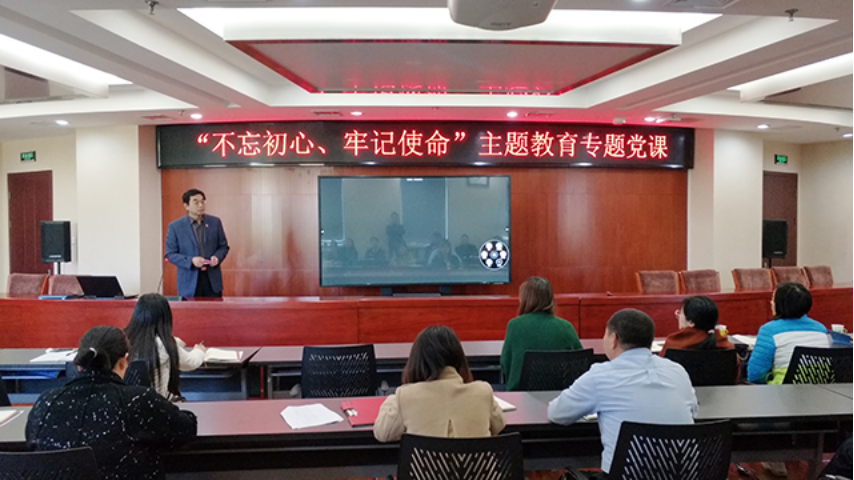 2019年10月31日上午10点,根据公司“不忘初心、牢记使命”主题教育工作安排,太阳成集团tyc151cc在图书馆303室召开“不忘初心,牢记使命”主题教育专题党课。党委书记杨军同志到会指导,植物科学技术公司党支部书记王绍辉,党总支副书记、经理潘金豹以及太阳成集团tyc151cc全体教师党员和部分员工党员代表参加了此次党课。