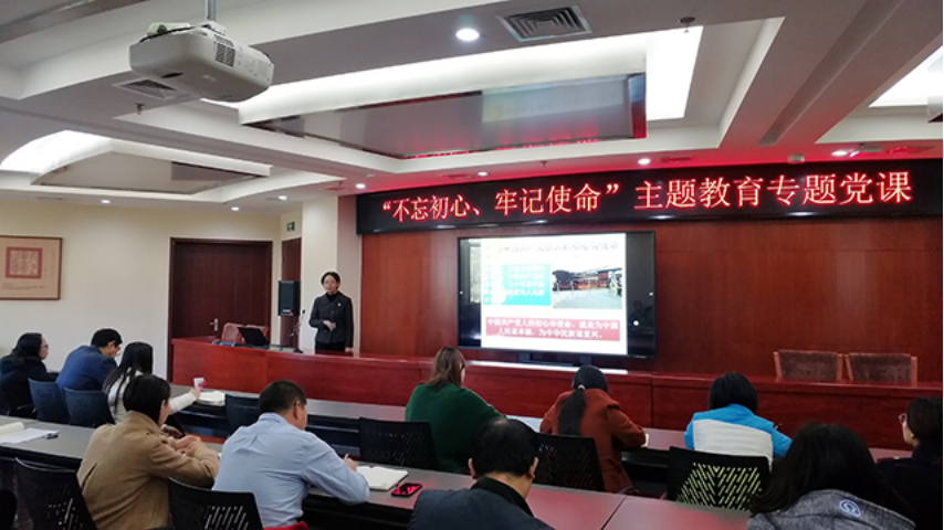 随后,潘金豹经理以“不忘初心,践行使命”为题,为党员们介绍了中国共产党的初心和使命,其中提到毛泽东思想指引党实现了中华民族站起来的使命,邓小平理论指引党实现了中华民族富起来的使命,习近平新时代中国特色社会主义思想指引党实现中华民族强起来的使命,希望党员们牢记中国共产党的初心和使命。潘金豹老师同时强调了主题教育活动的重要意义,希望教师能够认真履行自己的职责和使命,围绕公司的重点工作,发挥党员的模范先锋作用,建设和谐美丽植科。