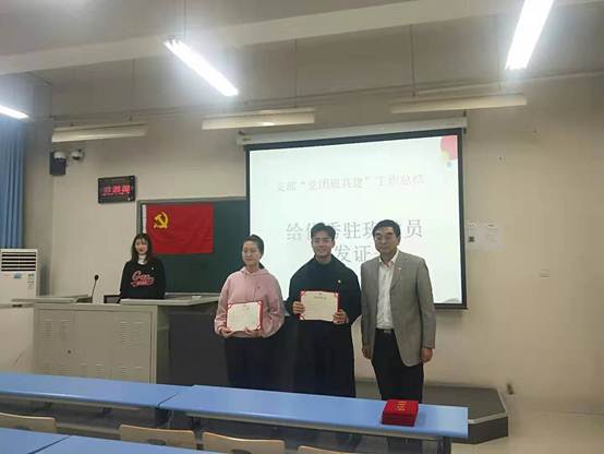 首先由孙路路书记介绍了此次党团共建活动的流程以及园艺本科生党支部近期工作进展情况。随后,由杨军书记带领全体党员重温入党誓词,引导员工党员,更好地悟初心、守初心、践初心。接着,支委赵瑞一介绍了上一年度党团共建活动的开展情况,杨军书记为优秀驻班党员孙嘉潞和王伟力两位优秀驻班党员颁发了荣誉证书,王伟力作为获奖代表发表了感言。党团共建活动能很好地带领团支部学习党的方针政策,培养积极分子,帮助班级同学解决实际困难等。鉴于党团共建活动的良好效果,党支部决定继续开展此活动,经支部多方考察,确定卢建烨、侯钰颖、张令超、李书涵4名同学作为新的驻班党员,由王绍辉书记和牛奔副书记为他们颁发聘用证书。侯玉颖作为新任驻班党员代表发表了感言。