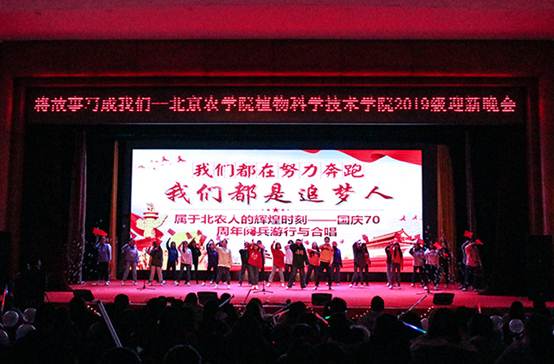本次迎新晚会的节目精彩纷呈,种类多样。由bua seven表演的歌曲串烧,深深吸引住同学们的目光,将本次晚会推向了高潮。由生活部,办公室表演的舞蹈独特的动作与创意,帅气的律动与张扬,更是展现出了青春的力量。此次晚会的亮点是回顾国庆70周年重大活动的节目。在国庆盛典上,33名植科师生参与群众游行、广场合唱,共同欢庆新中国70周年华诞的高光时刻。听完对两位参与者的采访,我们更是坚定了与国同行的信念。参与者们一同演唱的《我们都是追梦人》,更是展现了以青春之我,创建青春之国家,青春之民族,青春之人类的精神风貌。