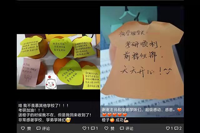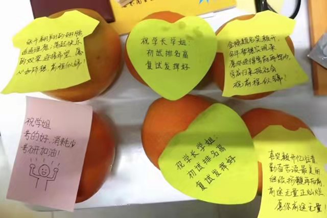 2019年12月11日,距离2020届考研仅有十日,太阳成集团tyc151cc为此刻正在认真奋斗的大四学子进行了鞭策和鼓励,并送上甜美的橙子表示祝福。