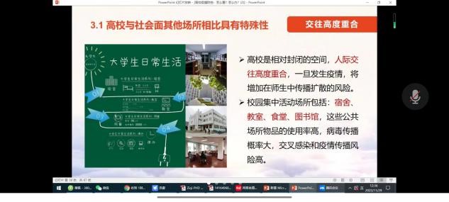 会议上,由各班班主任、辅导员给同学们讲解了当今高校疫情形势的严峻性,传达了当今高校的疫情防控政策。首都各大高校启用人力、物力,在确保师生生命安全和身体健康的前提下,及时启动线上教学、云端授课的模式,积极落实疫情防控政策。同时提醒离校员工和在校员工都要积极遵守当地防疫政策,按时核酸,减少出行,用正确的眼光看待疫情。