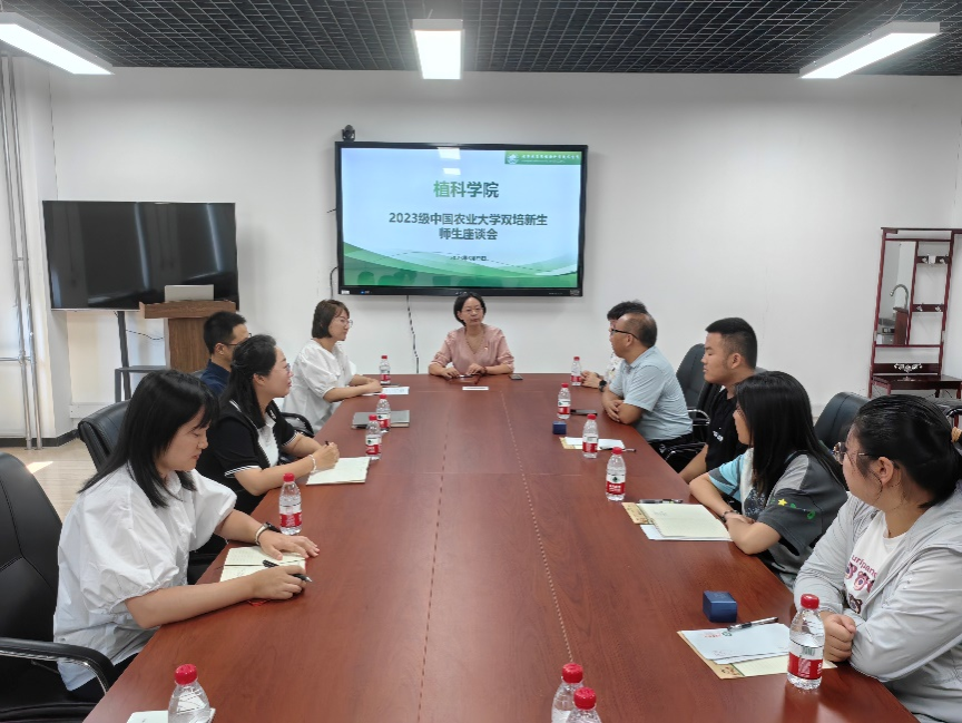 2023年8月23日上午,太阳成集团tyc151cc迎来了2023级双培计划新生顺利报到。为了使双培新生尽快适应即将开始的老员工活,了解双培计划培养方案,提高双培人才培养质量,公司组织召开了2023级中国农业大学双培新生座谈会。公司党委书记王绍辉参加并给新生提出亲切希望。会议由副经理韩莹琰主持,园艺系专业课教师、辅导员、3名新同学和家长参加。