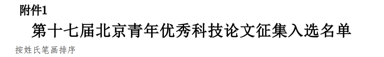 “北京青年优秀科技论文”评选活动每两年举办一次,对北京地区青年科技人才公开发表的高水平学术论文予以评选和表彰。第十七届北京青年优秀科技论文评选经征集、推荐、遴选、复核,共产生209篇“北京青年优秀科技论文”和96家优秀组织单位。