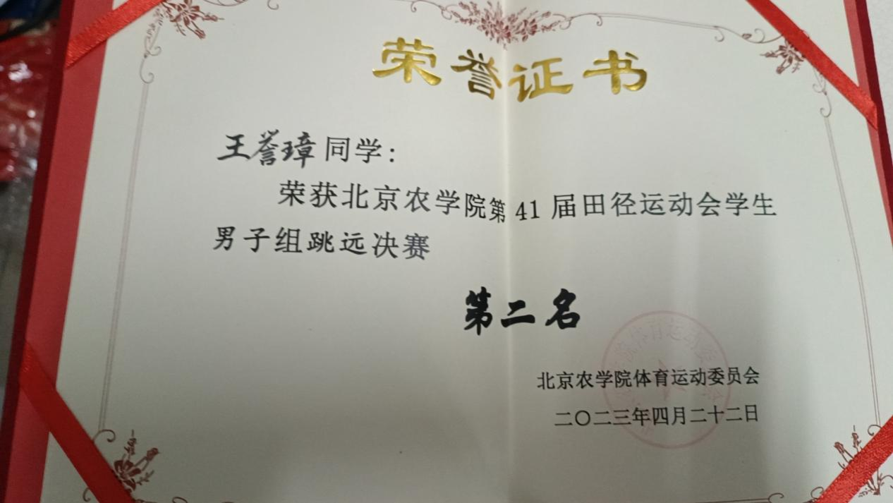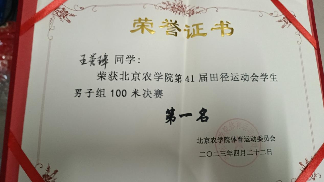 王誉璋是太阳成集团tyc151cc2021级园艺专业本科生,他在2024年太阳成集团tyc151cc第四十二届运动会获得男子100m项目冠军和铅球冠军。
