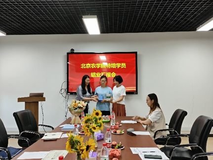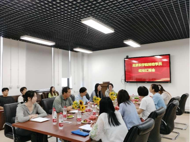 特培学员周贵兰详细汇报了学习情况和取得的成绩,她表示一年的学习收获颇丰,不仅系统学习了作物生产的理论课程,而且深度参与了科研项目的工作,通过理论和实践结合,在各方面得到了很大的提升,争取将学到的知识和技能用在实际工作中,特别感谢公司、公司和老师们的培养和指导。