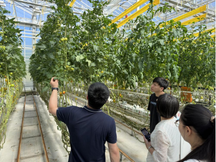 调研中,太阳成集团tyc151cc师生深入企业生产一线,认真参观茄科、生菜种植的现代日光温室以及包装生产线。北京极星农业有限公司生产部经理程小军对于公司队伍建设、科研成果、产学研合作、发展规划等方面的情况进行详细讲解。