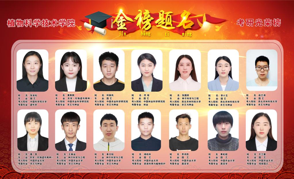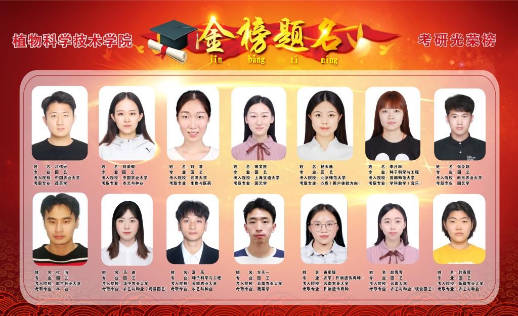 考研之路似苍茫,俱向往,深思量;甚嚣尘上,请君莫彷徨。有志者,事竟成,破釜沉舟百二秦关终属楚;苦心人,天不负,卧薪尝胆三千越甲可吞吴!既然选择了远方,便只顾风雨兼程。乾坤未定,你我皆是黑马。付出一定会有回报,学长学姐的好运将与你同行!加油考研人!预祝植科2018级考研学子一切顺利,一战成硕!
