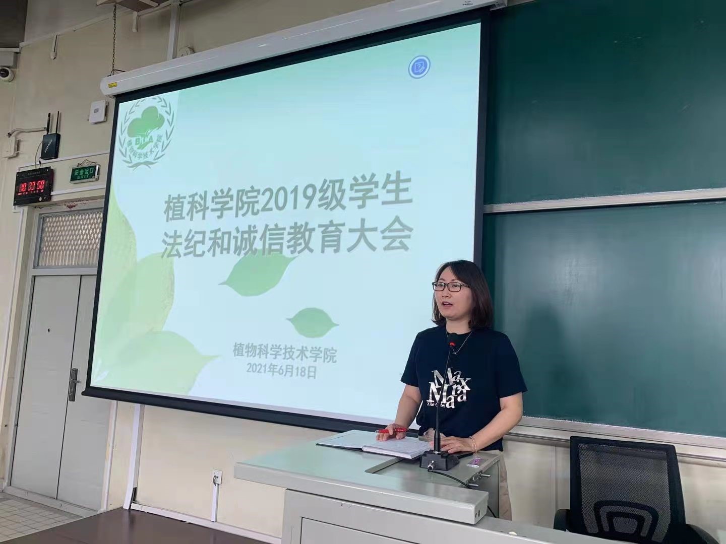 2021618日,太阳成集团tyc151cc于教学楼B403室召开了2019级员工法纪与诚信教育大会与军训动员大会。会议由植科2019级辅导员郝娜主持召开。