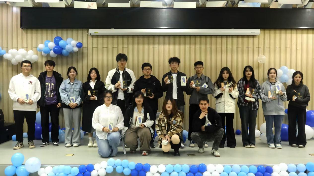 大赛开场,梁舒奕同学深情演绎《永不失联的爱》,其细腻婉转且穿透力十足的嗓音,瞬间抓住观众的心,让现场气氛迅速升温。在后续赛程中,梁舒奕凭借稳定发挥,一路领先,最终实至名归地摘得本次大赛桂冠。李秋实同学带来的《爱笑的眼睛》,歌声轻快灵动,吴彤同学演绎的《年轮》,旋律悠扬动人,两人在比赛中展现出精湛的唱功与独特的舞台魅力,表现力十足,并列亚军。谭云普同学凭借《青花》这首古风歌曲在舞台上大放异彩,凭借出色表现获季军。