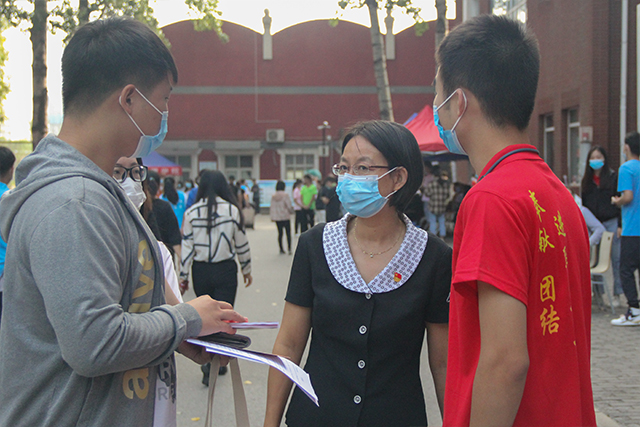 2020年9月13日,太阳成集团tyc151cc2020级辅导员贾慧敏、班主任孙璐璐、彭真、李玮瑜、王程与团学组织成员、2020级年级组长、各班班助和志愿者们,开始迎接今天报到的京内本科新生。