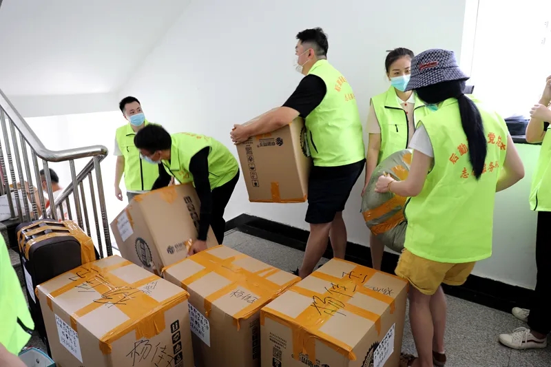 由衷感谢后勤基建党支部组建的志愿服务队对公司2020届毕业生离校工作的支持!7月7日公司2020届毕业生返校,时间紧、邮寄任务重。一上午近百个箱子挤压在宿舍楼道,行李邮寄工作进展缓慢。身穿绿色荧光马甲的后勤志愿服务队火速支援,炎热的天气,沉重的行李,挡不住服务队一趟趟搬运的步伐。正是因为有你们的帮助,使得这个毕业“寄”含温度,有速度!在此,致上太阳成集团tyc151cc全体人员的敬意,谢谢大家的帮助!